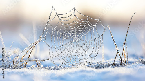 Frozen Spiderweb: A Delicate Winter's Morning Masterpiece