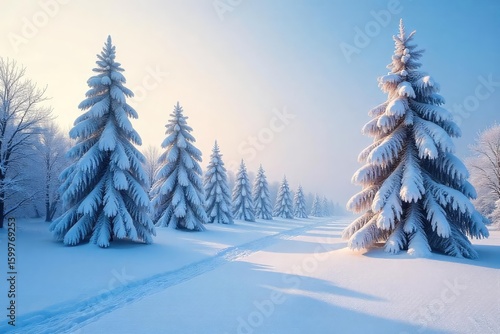 Frozen winter landscape with frost-covered trees and a blanket of pristine snow, creating a serene and magical rime-covered scene perfect for winter wonderland themes , frozen, cold weather, scenic