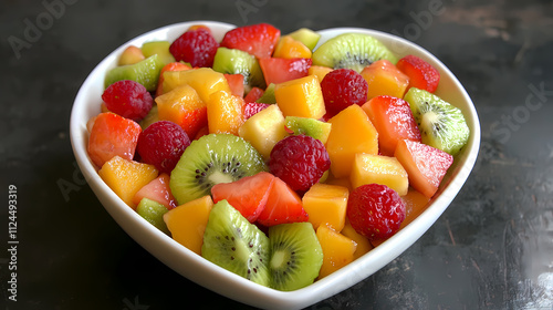 Fruit salad in heart shaped bowl - healthy eating