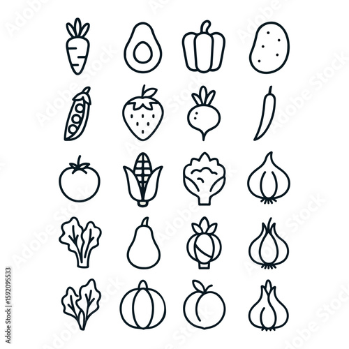 fruits and vegetable line icon pack containing