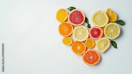 Fruits heart on a white background. Heart shape in fresh vegetable . Valentine in eco-friendly vegan style. Valentine's Day concept, copy space. I love Fruits