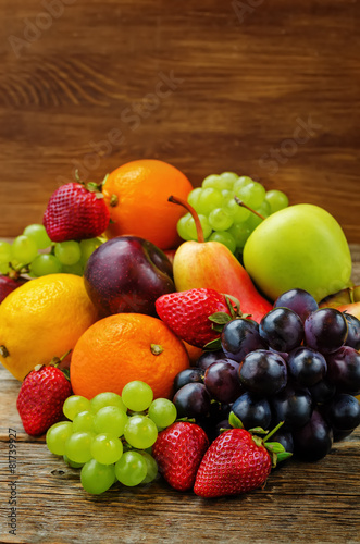 fruits. mango, lemon, plum, grape, pear, orange, Apple, banana,