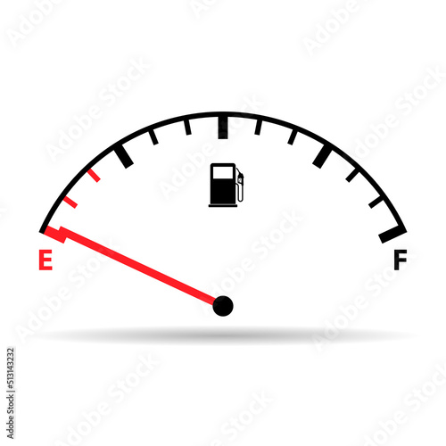 Fuel car indicator icon shadow, gauge petrol automobile meter symbol, control sign vector illustration