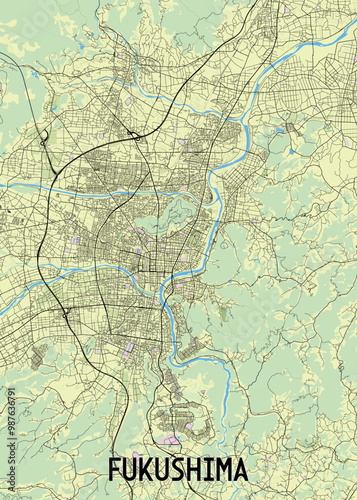 Fukushima, Japan artistic map poster
