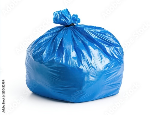 Full blue plastic garbage bag isolated on white. (5)