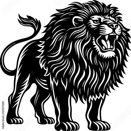 full body lion roaring