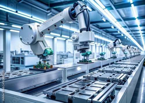 Fully Automated Modern PCB Assembly Line Equipped with Advanced High Precision Robot Arms