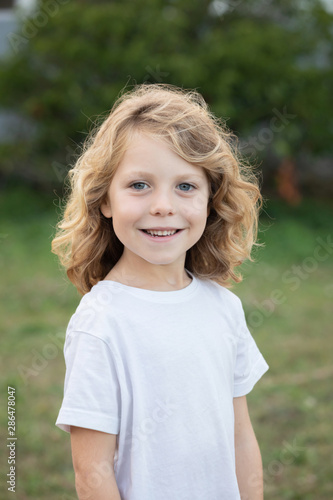 Funny blond kid with long hair