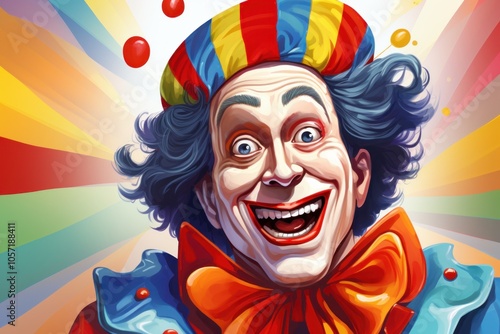 Funny clown in a bright costume, illustration. A celebration of laughter. April Fools Day