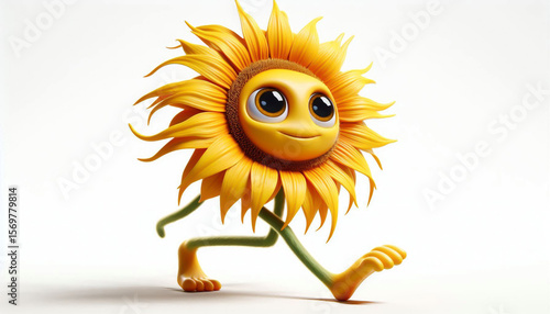 Funny clumsy flower cartoon, cute illustration on white background. Free copy space