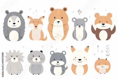 Funny cute bears and animals on a white background, illustration