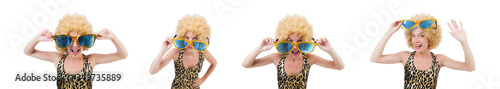 Funny pretty woman in sunglasses isolated on white