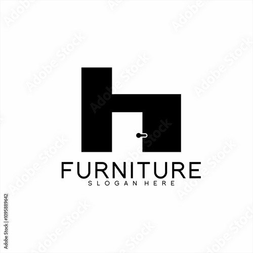 Furniture logo design. Illustration of a chair symbol with a door in negative space.