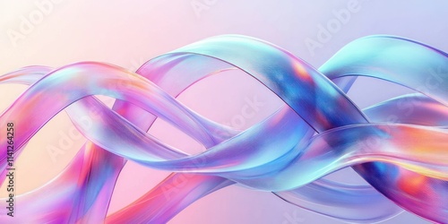 Futuristic Abstract Composition with Intertwined Transparent Ribbons in Pastel Colors