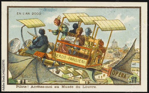 Futuristic airbus in Paris. Date: 1899