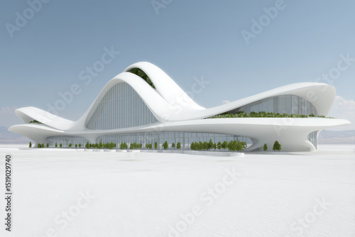 futuristic architecture featuring smooth forms glass and concrete elements integrated greenery