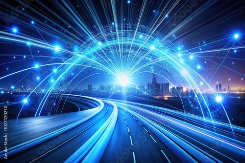 Futuristic Blue Light Streaks: Abstract Fiber Optic Background for High-Speed Wireless Technology