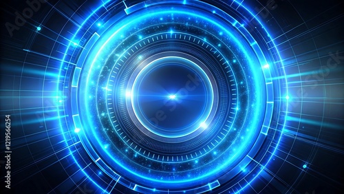 Futuristic Blue Neon Circle with Dynamic Light Trails on Dark Background for Sci-Fi and Tech Branding