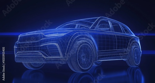 Futuristic car blueprint showcasing advanced technological features.