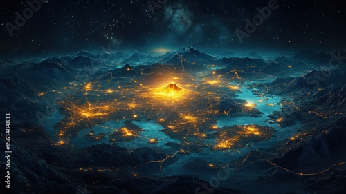Futuristic City Network on Alien Landscape at Night futuristic city network landscape night space ai