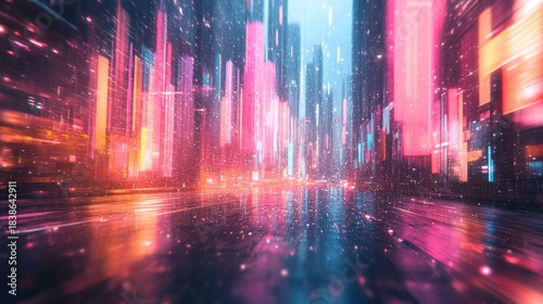 Futuristic City Street Scene - Neon Lights, Motion Blur