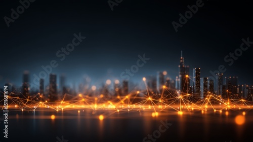 Futuristic cityscape with glowing nodes, symbolizing interconnected digital networks in a data-driven world