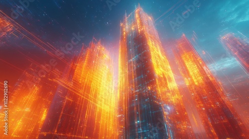 Futuristic Cityscape with Glowing Towers
