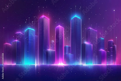Futuristic Cityscape with Neon Lights and a Starry Sky