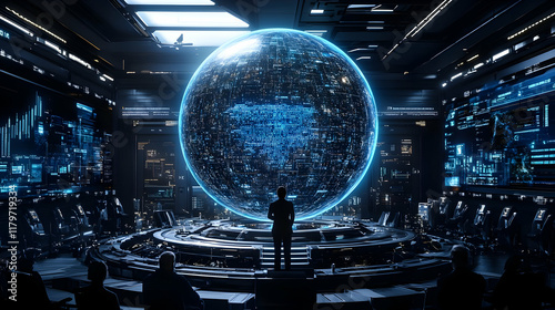 Futuristic Control Room 3D Illustration