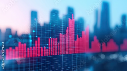 Futuristic Corporate Planning with Augmented Reality Graphs in Ultra HD Quality Against Skylines Backdrop, Copy Space Available