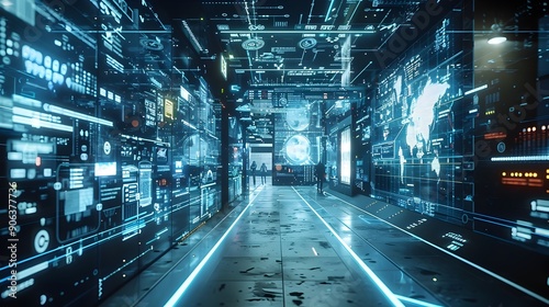 Futuristic Cyber Marketplace with Augmented Reality Interfaces and Holographic Displays