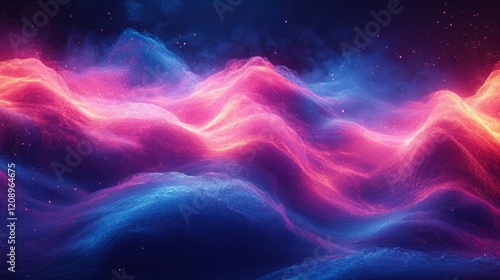 Futuristic Cyberpunk Digital Landscape with Neon Ribbons and Data Flow Representation
