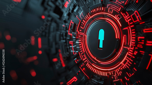 Futuristic cybersecurity design with digital lock, highlighting advanced technology, network protection, and data encryption for enhanced security solutions.