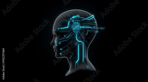 Futuristic Cyborg Head Profile Artificial Intelligence Technology Concept Digital Brain
