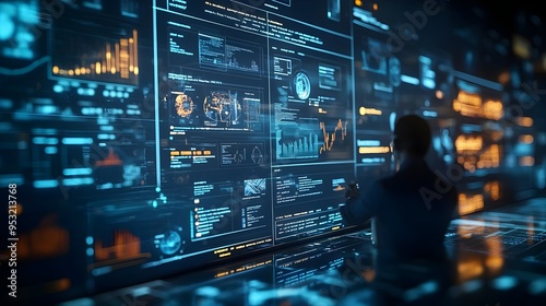 Futuristic Data Analyst Working on Screens