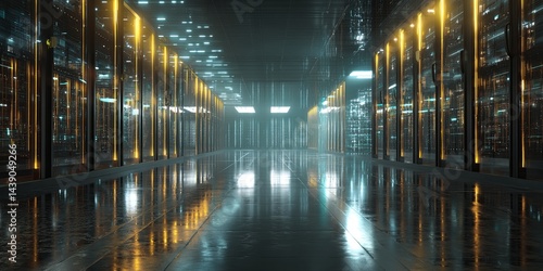 Futuristic Data Center with Glowing Server Racks and Soft Light Effects Creating a Dynamic and Technologically Advanced Environment