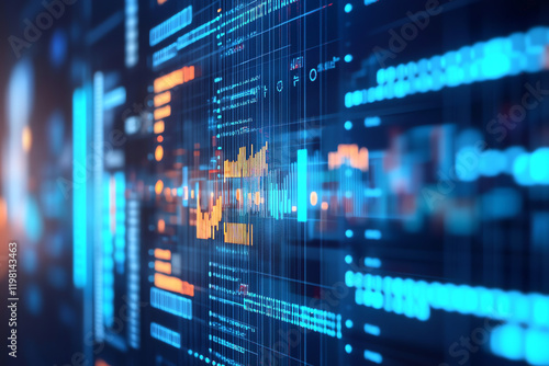 Futuristic Data Visualization with Graphs and Charts in High-Tech Background