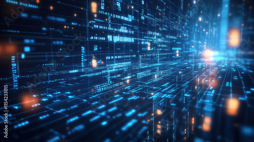 Futuristic Digital Background Featuring Glowing Data Streams, Circuit Patterns, and Vibrant Gradients, Perfect for Illustrating Neural Networks, AI Development, Data Encryption