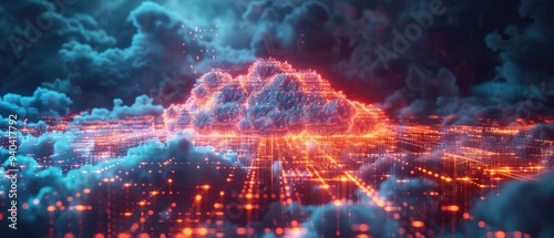 Futuristic Digital Cloud Computing Network in Hologram - High-Quality Visualization.