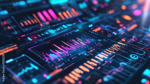 Futuristic digital dashboard with interactive graphs and data visualizations