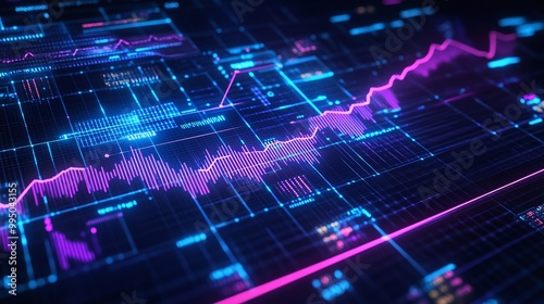 Futuristic digital data analysis with vibrant graph lines and glowing elements on a dark background.