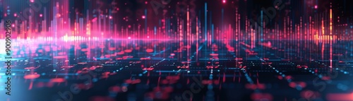 Futuristic Digital Data Visualization with Neon Lights and Abstract Grid Patterns