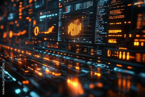 Futuristic digital interface glowing orange and blue.