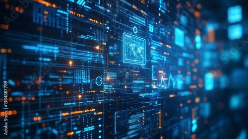 Futuristic Digital Interface with Data Streams and Visualization Elements