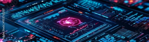 Futuristic Digital Interface with Data Visualizations and Graphs