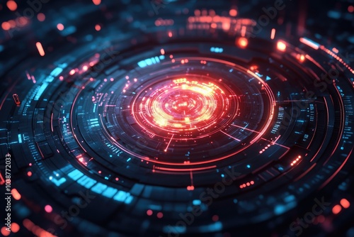 Futuristic Digital Interface with Glowing Circular Patterns and Vibrant Neon Colors