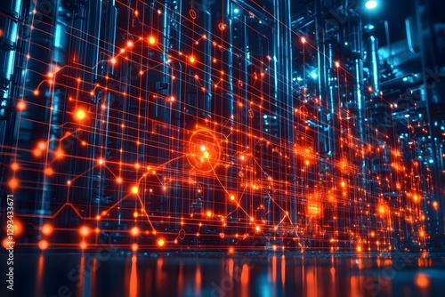 Futuristic Digital Network Interface with Glowing Data Connections for Technology Design