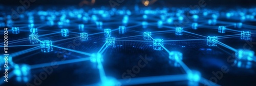 Futuristic digital network with glowing blue nodes and interconnected lines