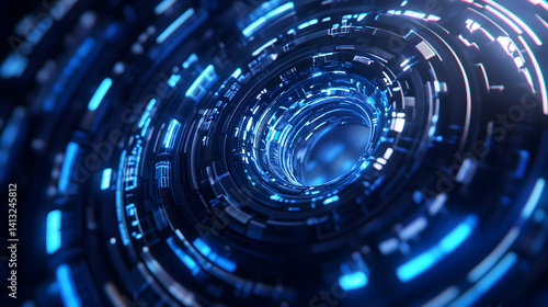Futuristic digital swirl with glowing lights.