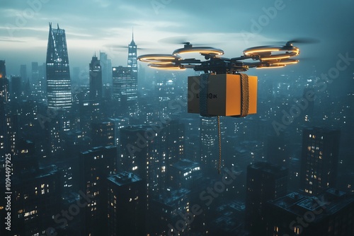 Futuristic drone ensuring safe package delivery, demonstrating e-commerce advancements